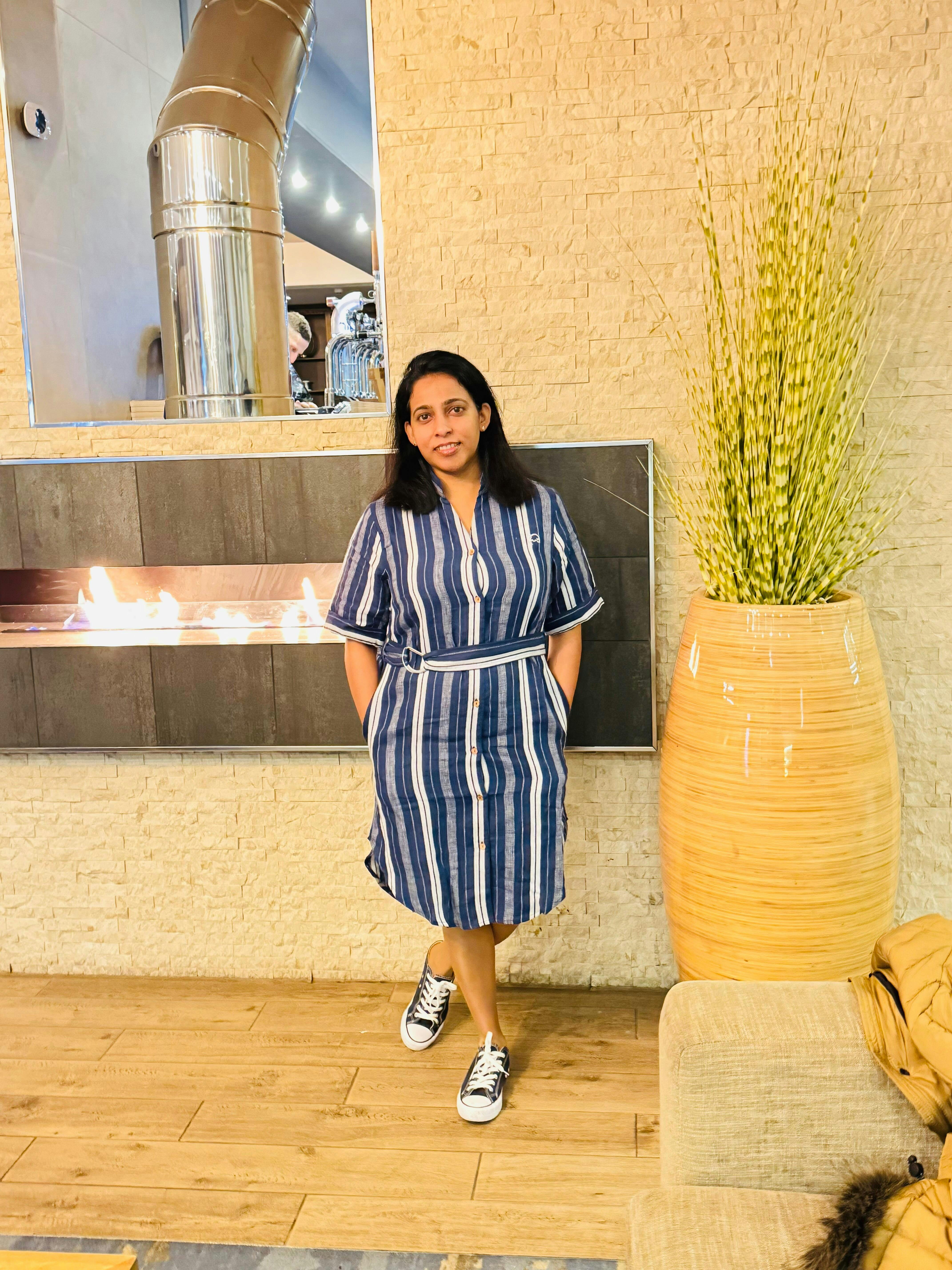 With functional side pockets, a removable waist belt, and sustainable coconut shell buttons, this dress balances style with practicality. Lightweight, airy, and eco-friendly, it’s your perfect companion for India’s warm climate — made with care, not compromise.